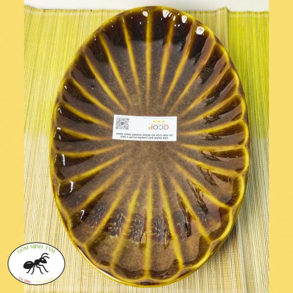 Đĩa bầu dục hoa cúc sâu lòng 30cm – Gốm Minh Tâm Phù Lãng Bắc Ninh- góc thẳng