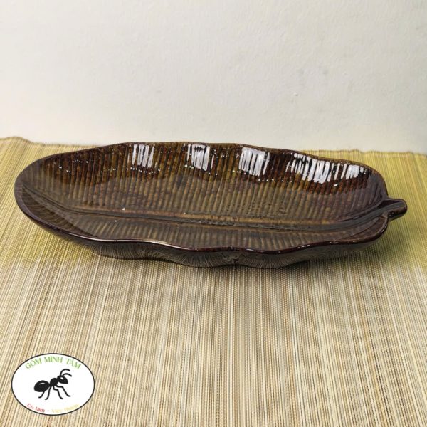 Hãy là người đầu tiên nhận xét “Đĩa lá chuối sâu lòng 30cm nâu đậm”